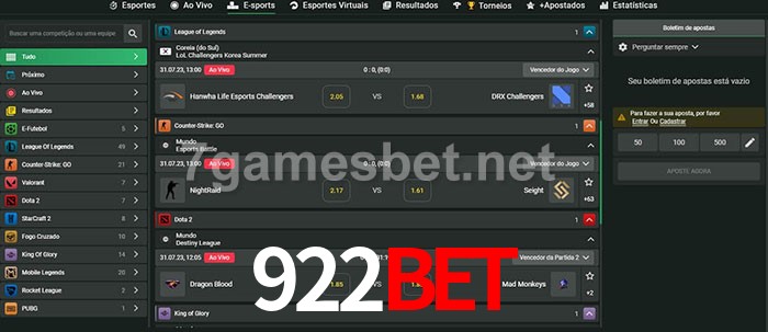 O 922bet oferece uma grande seleção de opções de apostas em e-sports com probabilidades competitivas